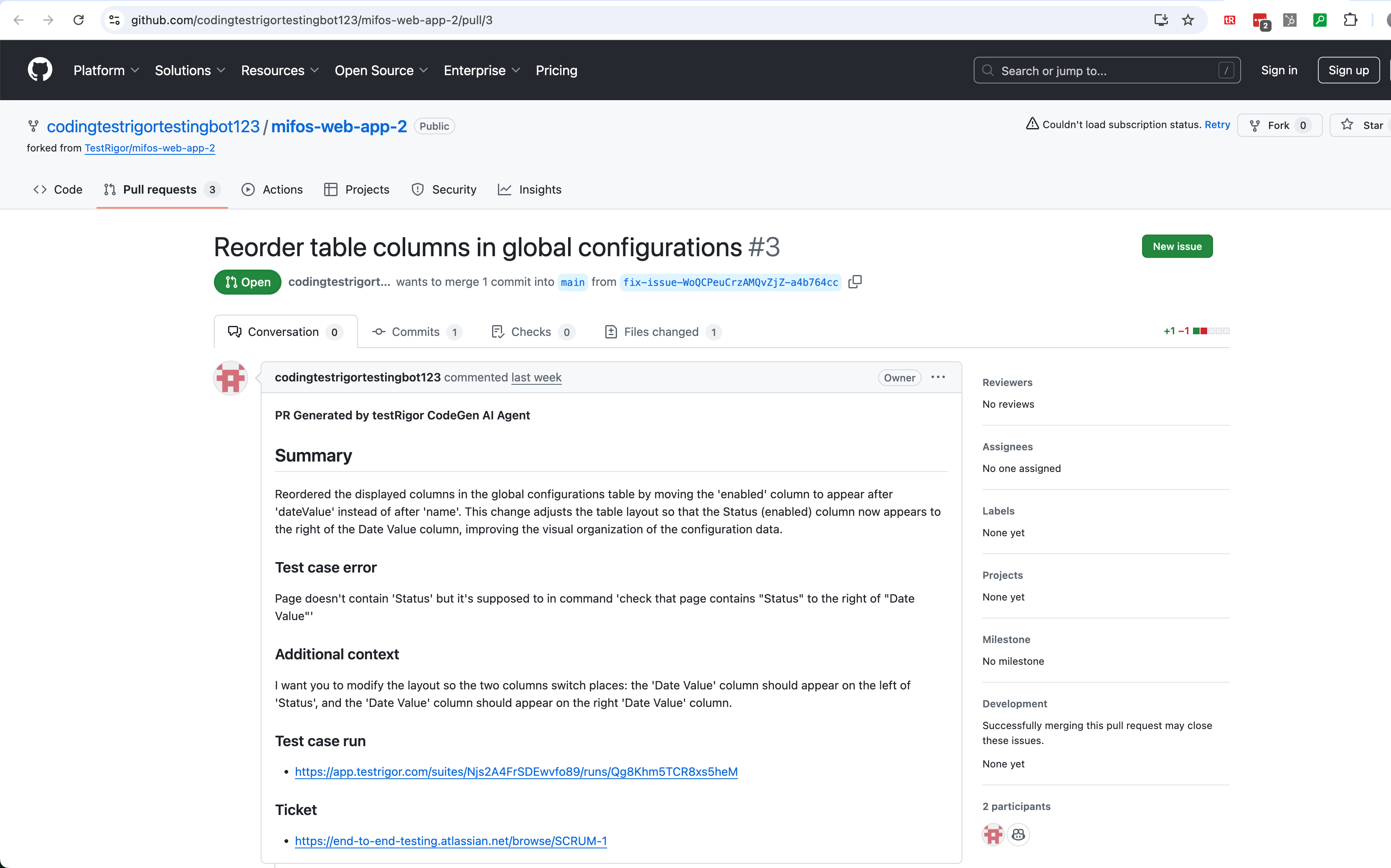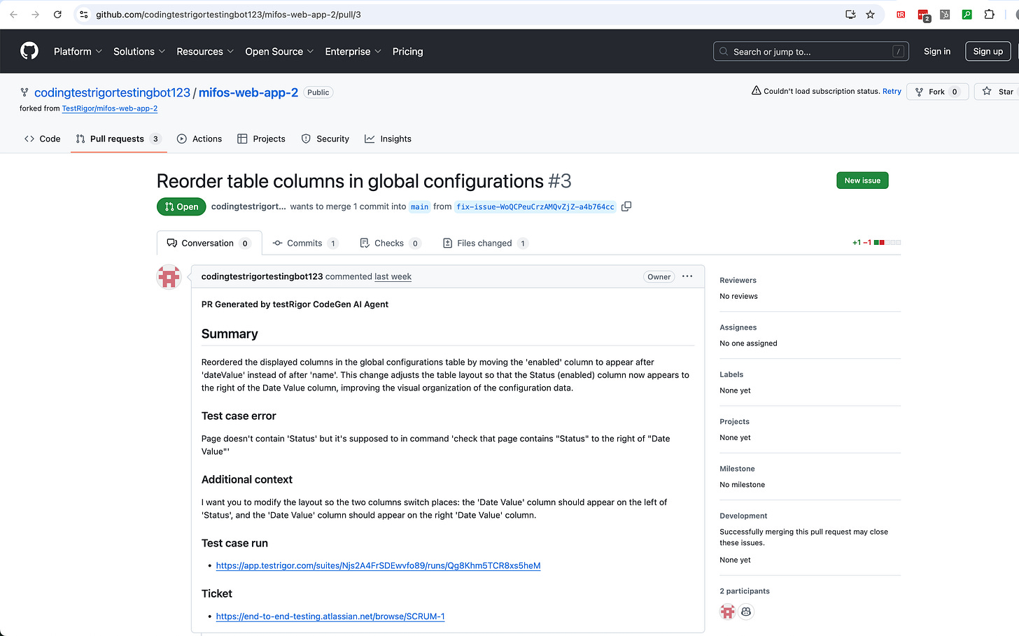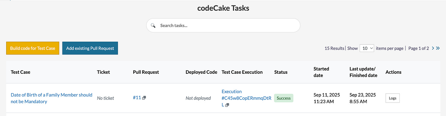 After the test passes, testRigor creates a PR for a developer to review the generated code. The developer may review and/or refactor the code.