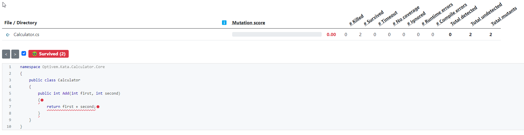 Run mutation testing to show 0% mutation score