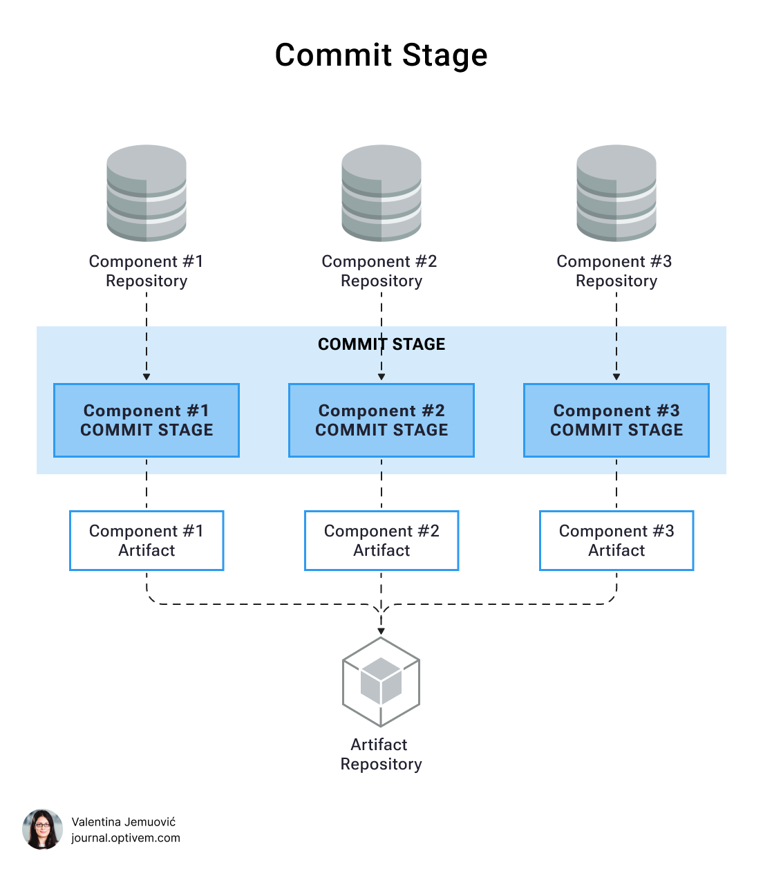 The first step of automating Component deployment is to build and publish its Artifact automatically. This’s the purpose of the Commit Stage - to publish the Component Artifacts, so that we can deploy those Component Artifacts in subsequent stages (Acceptance Stage & Release Stage).